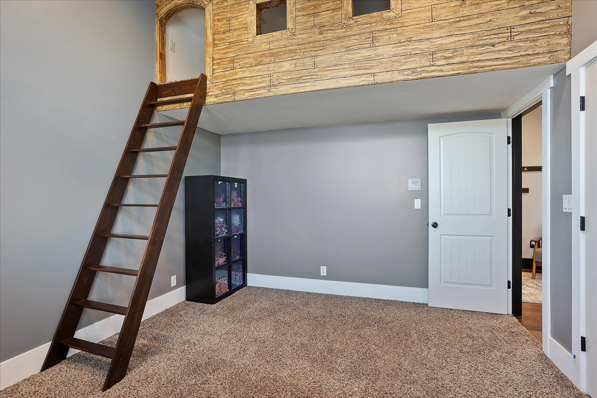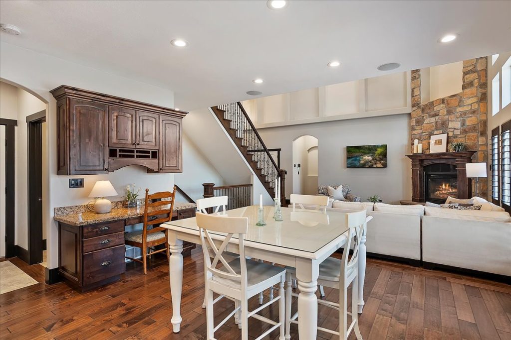 The main-level master suite is a true retreat, complete with vaulted ceilings, a generous walk-in closet, and a luxurious en-suite bath showcasing a corner tub, private commode, and a custom walk-in shower. The great room makes a bold statement with 20-foot ceilings and a stunning floor-to-ceiling stone fireplace. Plantation shutters throughout the main floor add a touch of timeless elegance while providing privacy and light control.