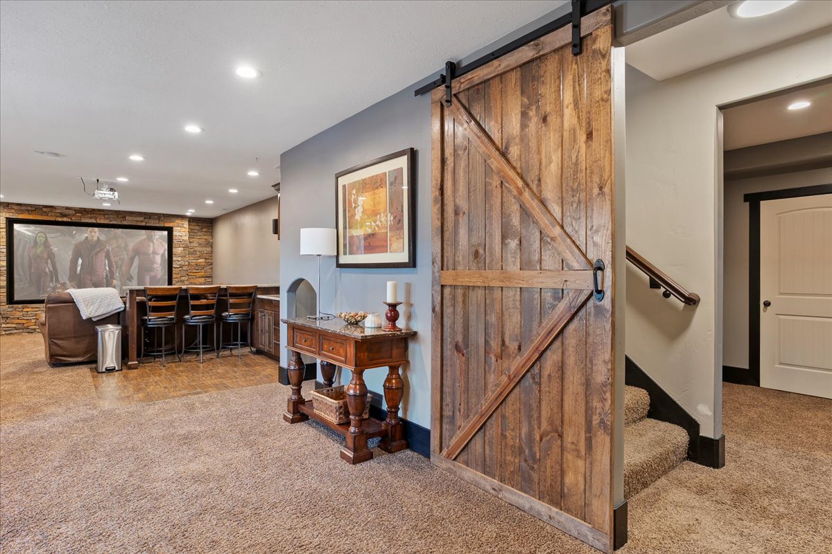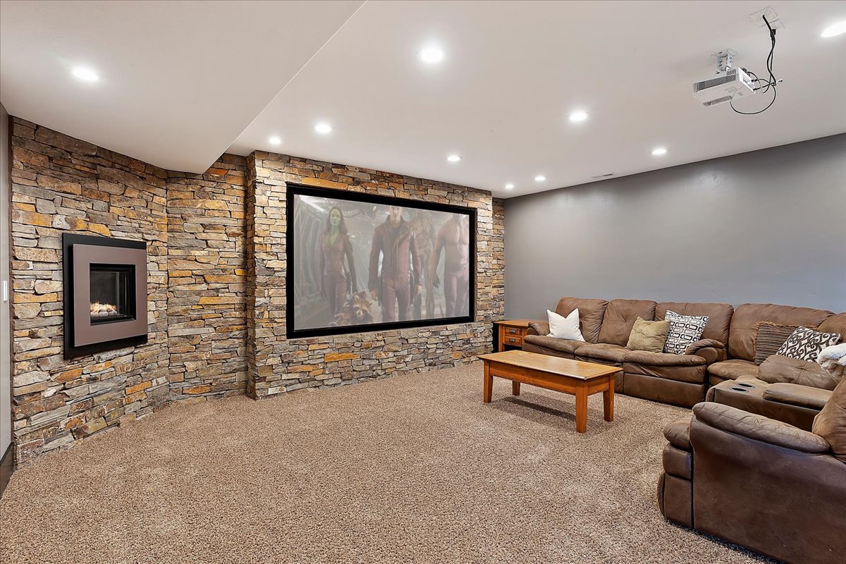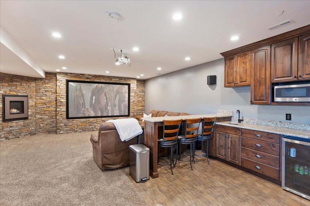 The fully finished basement enhances the home's versatility with a projector, kitchenette, a dedicated room ideal for a home gym, and generous space for gatherings, movie nights, or multigenerational living.